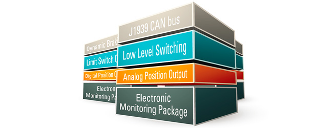 每個(gè) HD 直線推桿都內(nèi)置 Thomson 的 Electrak 模塊化控制系統(tǒng) (EMCS),作為現(xiàn)今市場(chǎng)上可用的最佳板載控制器的基礎(chǔ),包括可選的 J1939 CAN 總線。