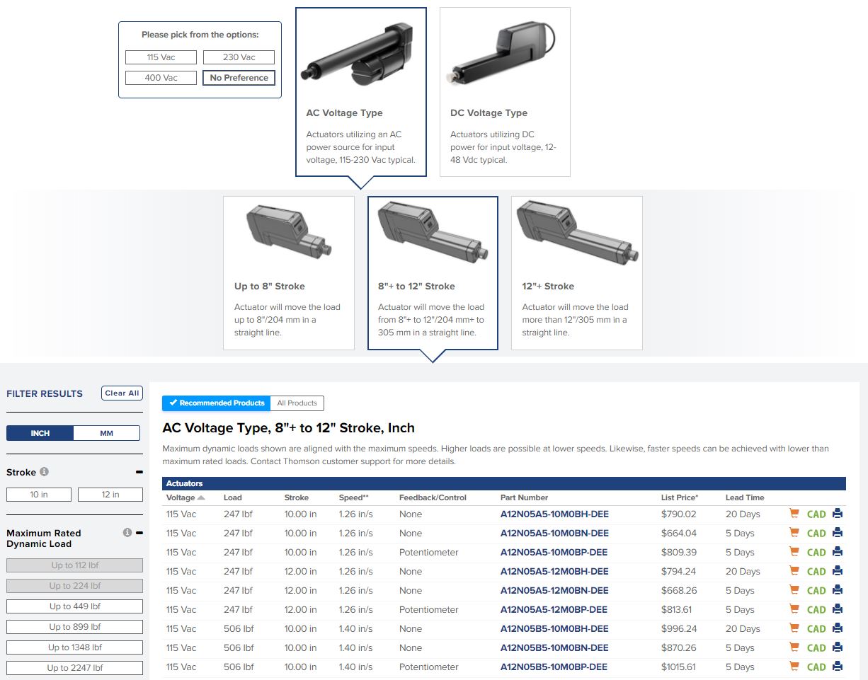 As you refine your motion, power and control needs, automated configuration tools like Thomson’s web-based linear actuator selector tool will help you optimize your selections. Image courtesy of Thomson Industries, Inc.